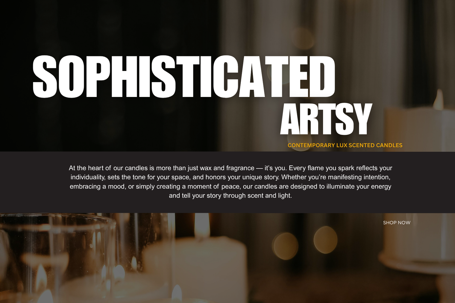 Our candles are designed for those who appreciate modern elegance and creative expression in equal measure. With clean lines, premium materials, and thoughtful scents, we embody the understated opulence of contemporary luxury. But beyond the surface, each candle is also a work of art — inspired by color, texture, and emotion — capturing a sophisticated artsy spirit that transforms any space into a gallery of light and mood.