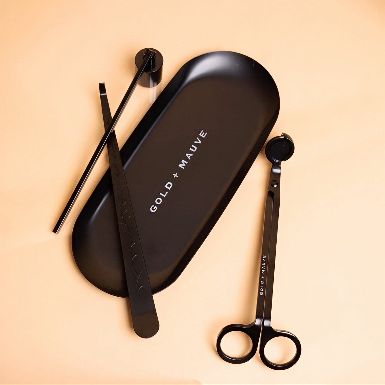 Gold + Mauve Candle Wick Trimmer, Candle Snuffer and Wick Dipper & Candle Accessory Set, 3 in 1 Candle Care Kit for Candle Lover (Matte Black))